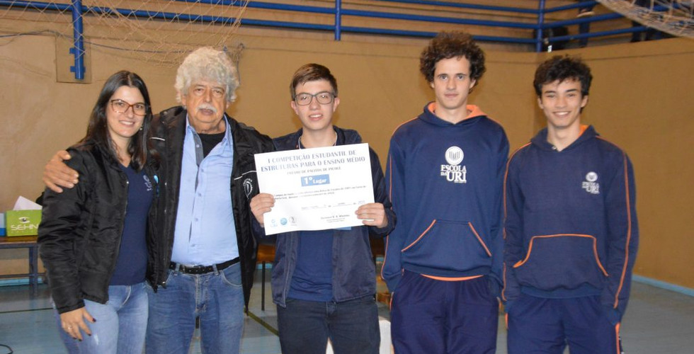 A equipe “URI – SEINIM”, da Escola da URI, conquistou o 1º lugar com 43,10kg. O grupo reuniu os alunos Mateus Heitling Cargnelutti, Gabriel dos Santos Silva, Carlos César Cassol Filho, Gabriel Furquim da Silva e Higor Andrade Bazzan.